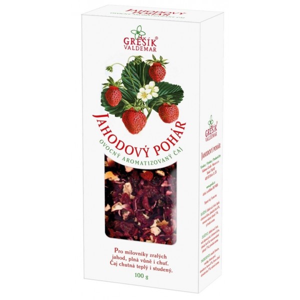 Složení: ibišek súd. květ, šípek, citrónová kůra, jahodník list 4 %, mrazem sušené jahody 3 %, přírodní aroma