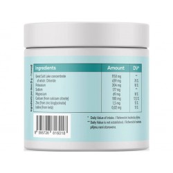 Složení: Složení: Inulin, koncentrát z Velkého solného jezera (1150 mg, RHP **), z toho chlorid (639 mg, RHP 70 %), draslík (204 mg, RHP 10 %), sodík (177 mg, RHP **), hořčík (69 mg, RHP 18 %), přírodní aroma, lyofilizovaný malinový prášek, stabilizátor: kyselina citronová, vápník (jako citrát vápenatý) (100 mg, RHP 12,5 %), zinek (jako zinek bisglycinát) (1,5 mg, RHP 15 %), jód (jako extrakt z kelpu – Laminaria japonica Aresch) (0,02 mg, RHP 13 %), sladidlo: steviol-glykosidy z fermentace.