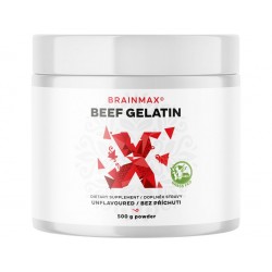 Grass-fed hovězí želatina bez barvy, chuti a zápachu. Je bohatá na tři aminokyseliny: glycin, prolin a hydroxyprolin, které jsou nezbytné pro zdraví kostí, kloubů, pokožky a střev. BrainMax hovězí želatina si vysloužila certifikaci Grass-fed, která zaručuje, že dobytek byl volně pasen pokaždé, když to bylo možné, zvířata mají prostor k pohybu a nejsou přikrmovány krmnými směsmi. To vše se následně odráží na kvalitě samotné želatiny. Neobsahuje žádná pojiva, plniva a přísady, lepek a stopy mléka ani jiných alergenů. Můžete ji použít k přípravě dezertů, marmelád, bonbónů, zahuštění omáčky či polévky, nebo si ji jen tak přidat do čaje nebo kávy.