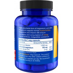 Vysoce kvalitní, účinné a biologicky dostupné magnesium pro doplnění hladiny hořčíku, podporu energetického metabolismu a normální činnosti svalů. Malát hořečnatý disponuje až 80% vstřebatelností, avšak Natios Magnesium je navíc doplněno o vitamín B6 v jeho aktivní formě P-5-P. Díky této kombinaci je efektivita doplňování hořčíku ještě vyšší. Každá veganská kapsle tohoto magnesia obsahuje 170 mg hořčíku.