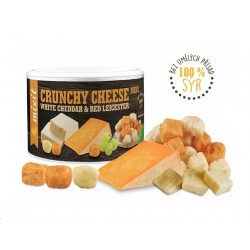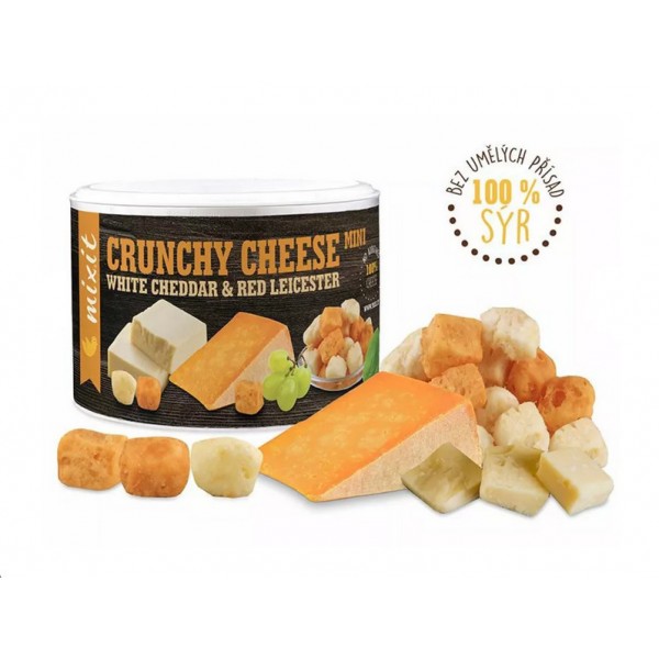 Řekněte sýr a ochutnejte naši gurmánskou novinku. Teplem sušené sýry White Cheddar a Red Leicester jsou anglická sýrová delikatesa určená pro labužníky jakéhokoliv věku. Tubus obsahuje 50 % Cheddaru a padesát procent Red Leicesteru, oba sýry jsou zárukou stoprocentní spokojenosti vašich chuťových buněk. Pochutnejte si na 100% sýrech bez dalších zbytečných přísad.