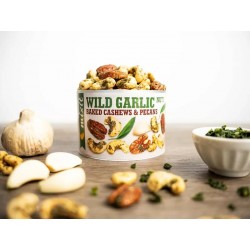 Prý mnozí stále nevědí, jak chutná česnek medvědí! To byl k činu hec - rozpálíme pec. Poznejte rafinovou chuť kombinace česneku setého a česneku medvědího. Vytvořili jsme podmanivě aromatickou česnekovou marinádu bez použití oleje, umělých aromat, barviv nebo éček, abychom do této voňavé lázně naložili naše výběrové kešu oříšky a pekany. Výsledek je jako vždy dozlatova vypečený a určitě nezůstane u jednoho sousta!