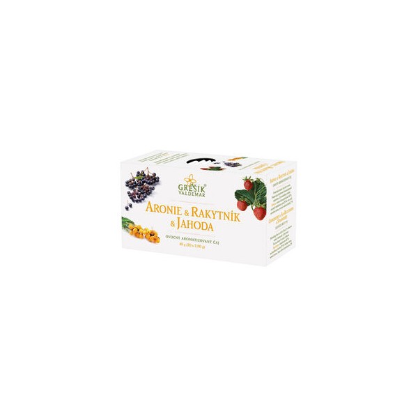 Složení: aronie plod 60 %, rakytník plod 20 %, vřes nať, přírodní aroma, mrazem sušené jahody 2 %